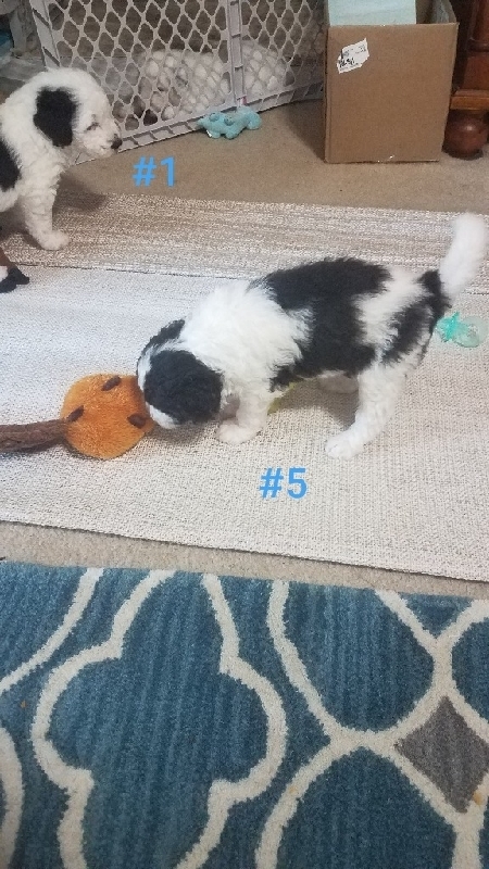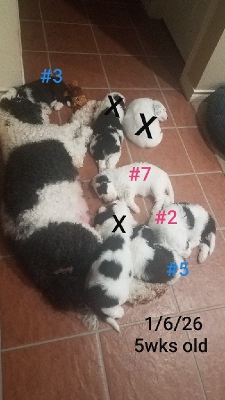 Standard Sheepadoodle puppies ready for forever homes. Born 11/30/25 2 Females and 2 Male puppies available. They were wormed at 3wks and 6wks old. Received 1st set puppy shots at 6wks old. Beautiful calm puppies. Both parents are standard F1 Sheepadoodles. Mom and puppies are in Port Lavaca,Texas. I will be more than happy to send you more pictures and visit these precious babies Call 361 920 6601
